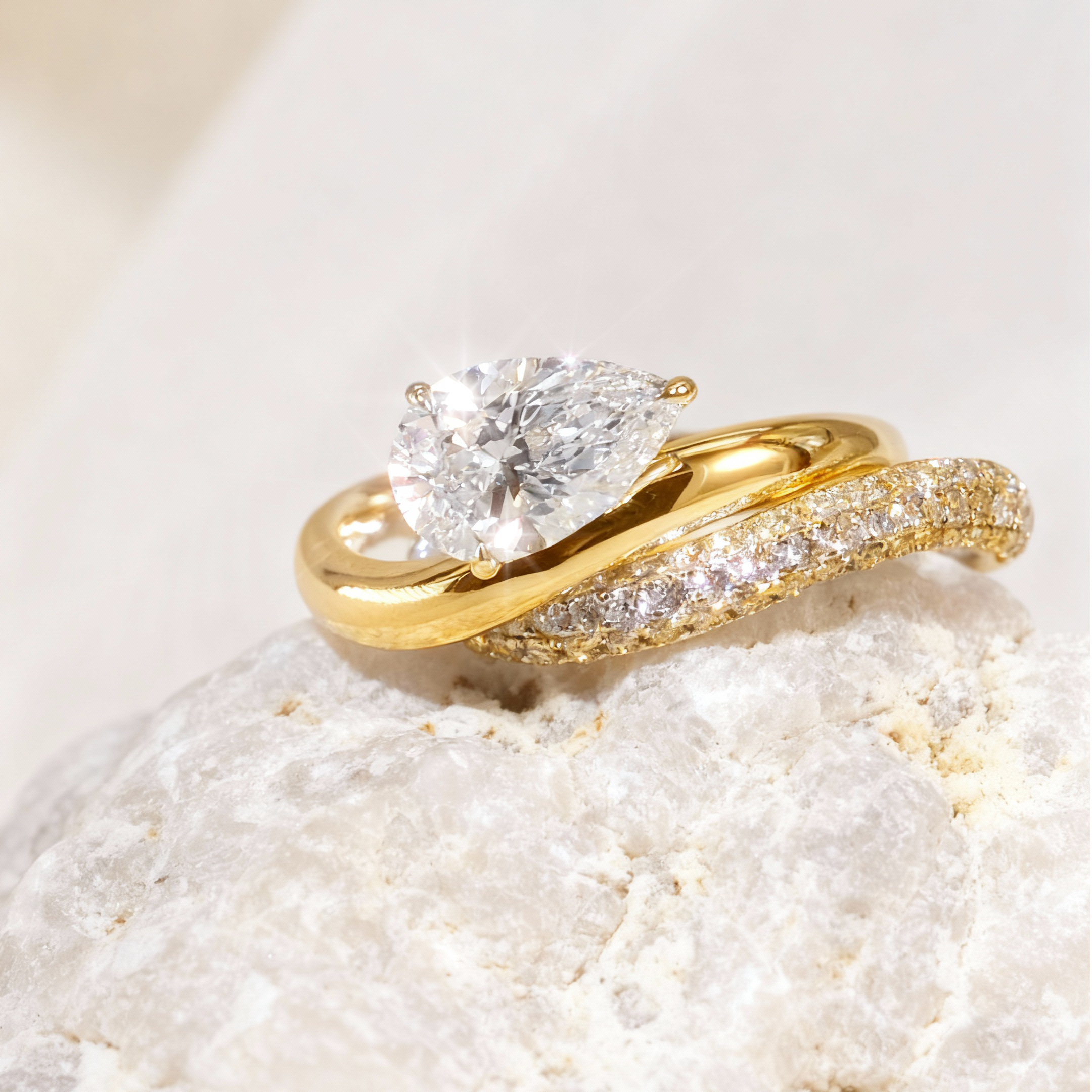梨形培育寶石套裝戒指 (附證書)