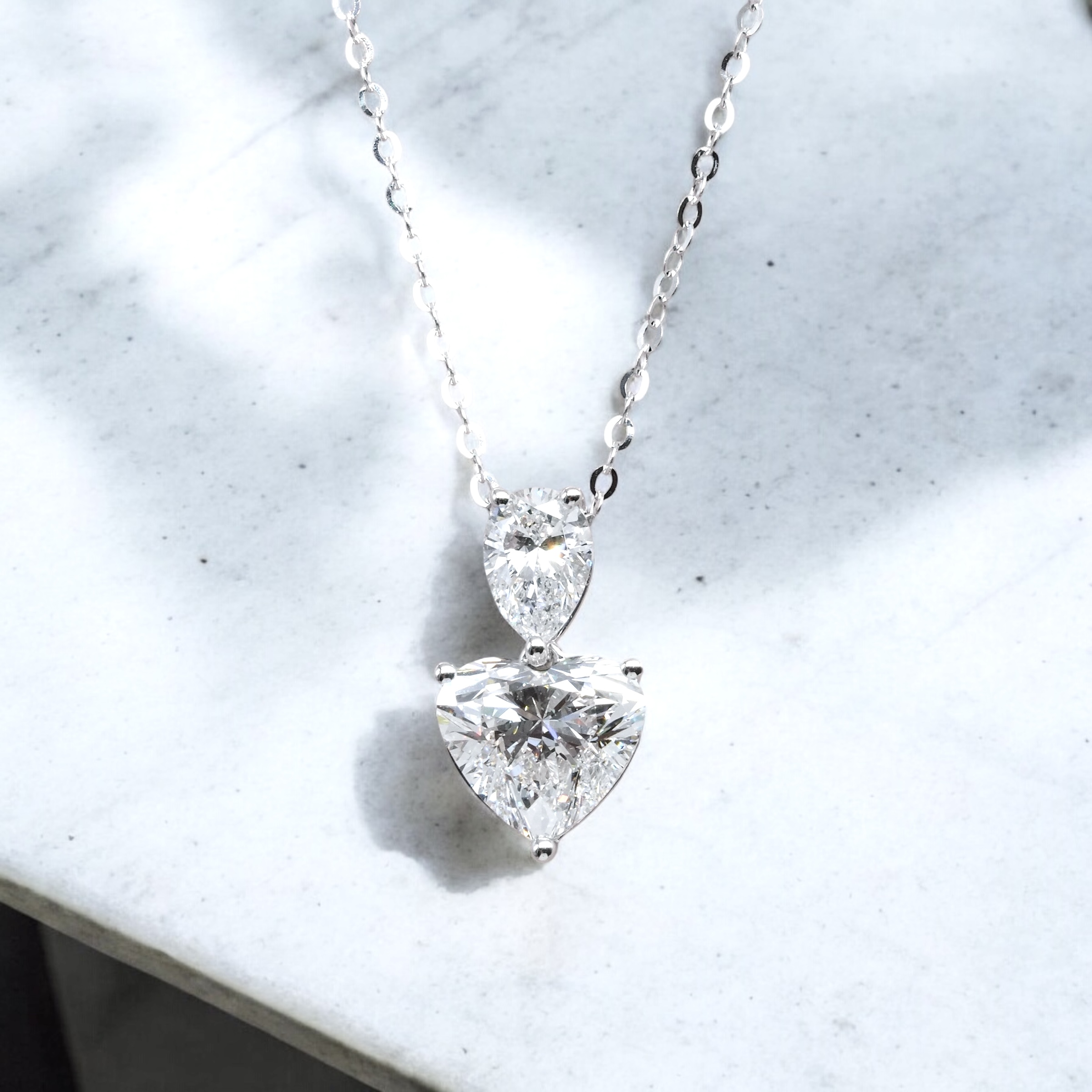 梨形及心形培育鑽石吊墜連18K頸鏈 (附證書)