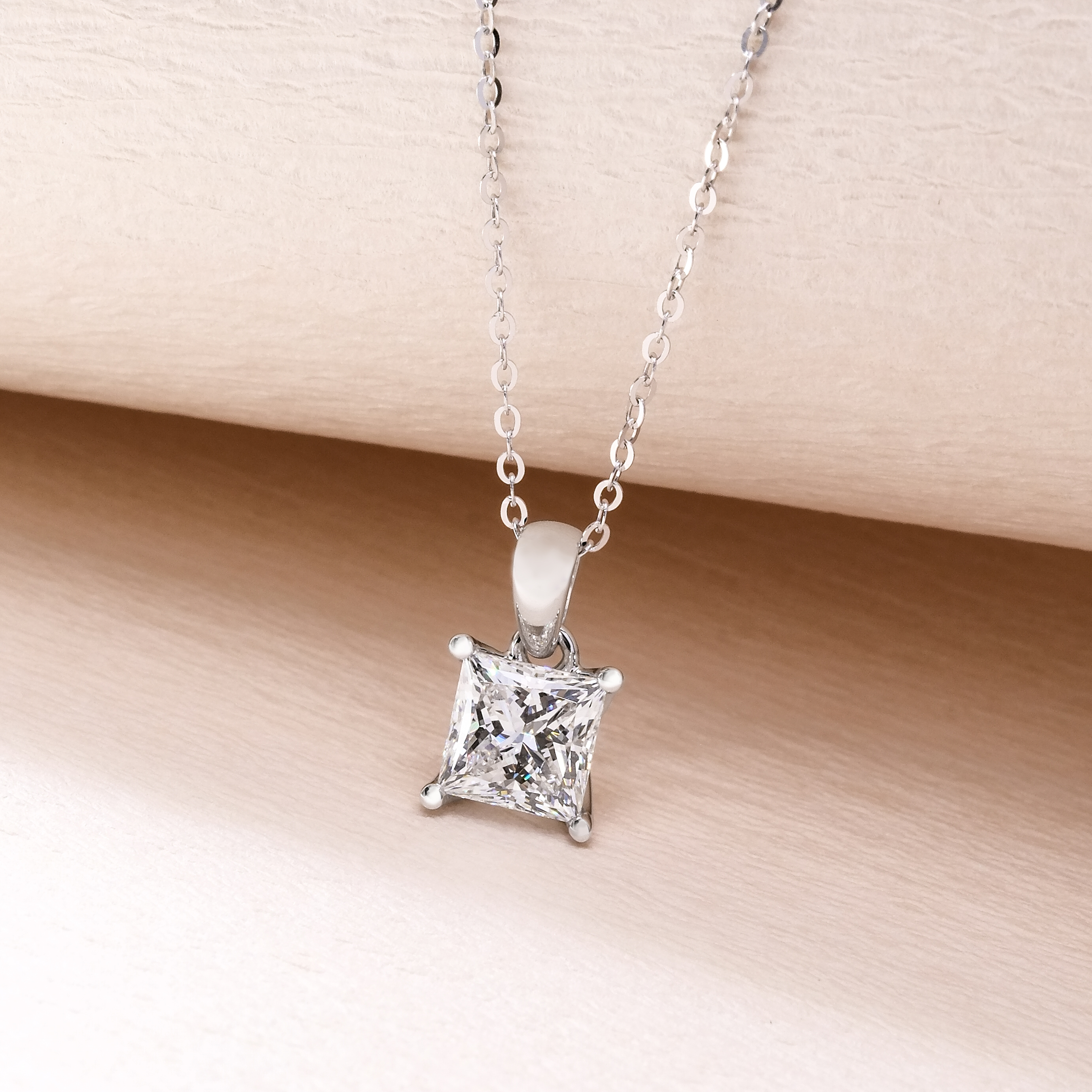 1卡公主方形培育鑽石吊墜連18K頸鏈 (附證書)