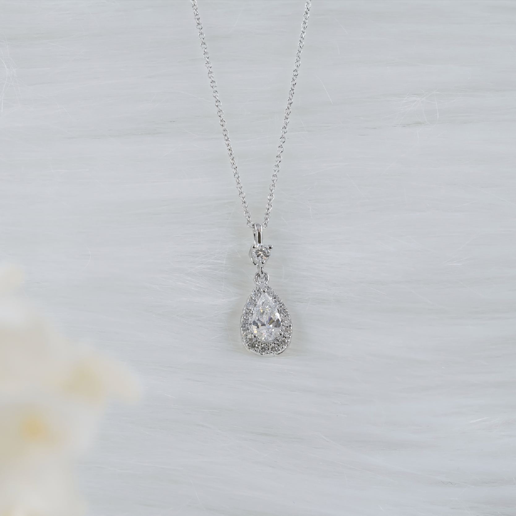 梨形培育鑽石吊墜連18K頸鏈 (附證書)