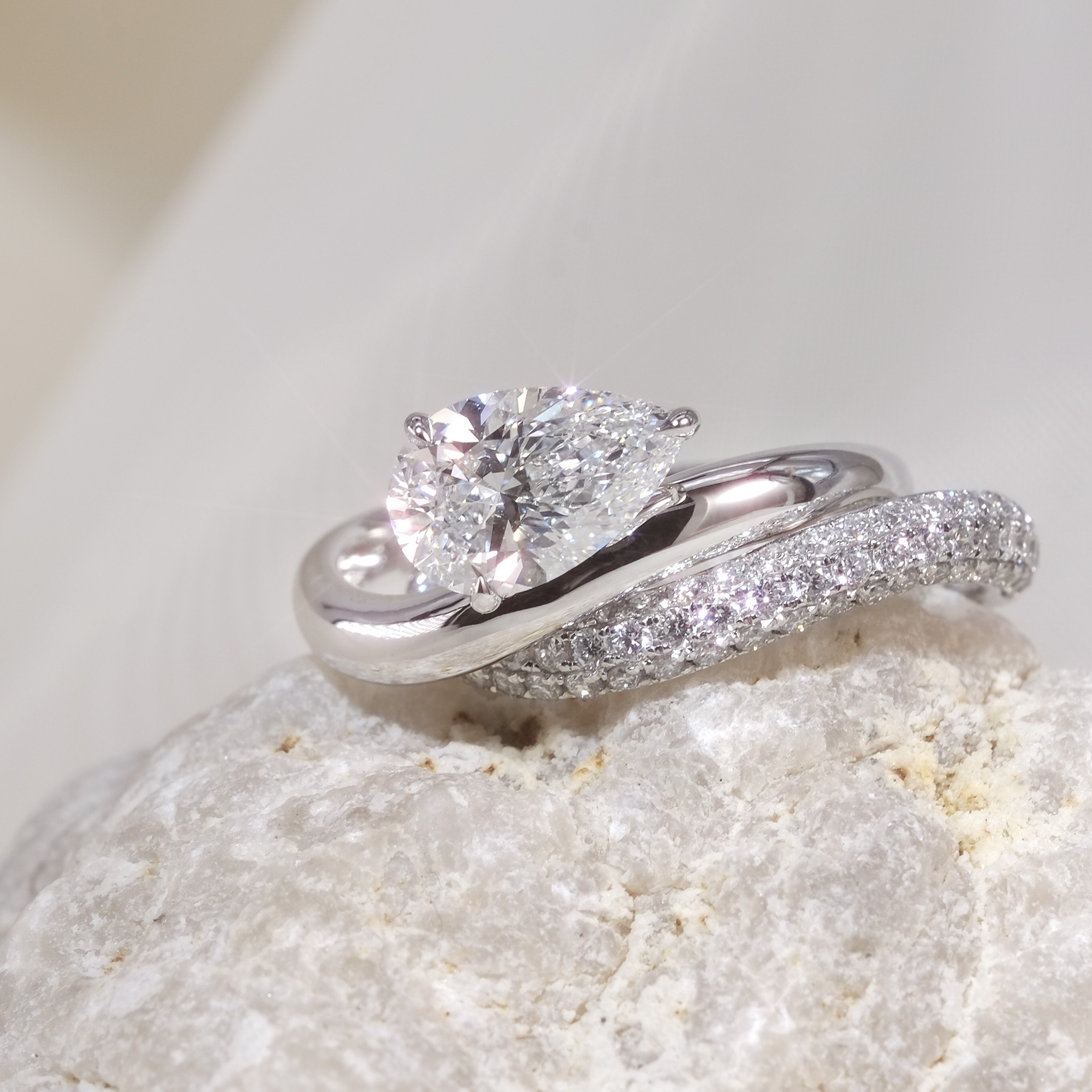 1.56ct D VS1 梨形培育鑽石18K白金套裝戒指 (附IGI證書)