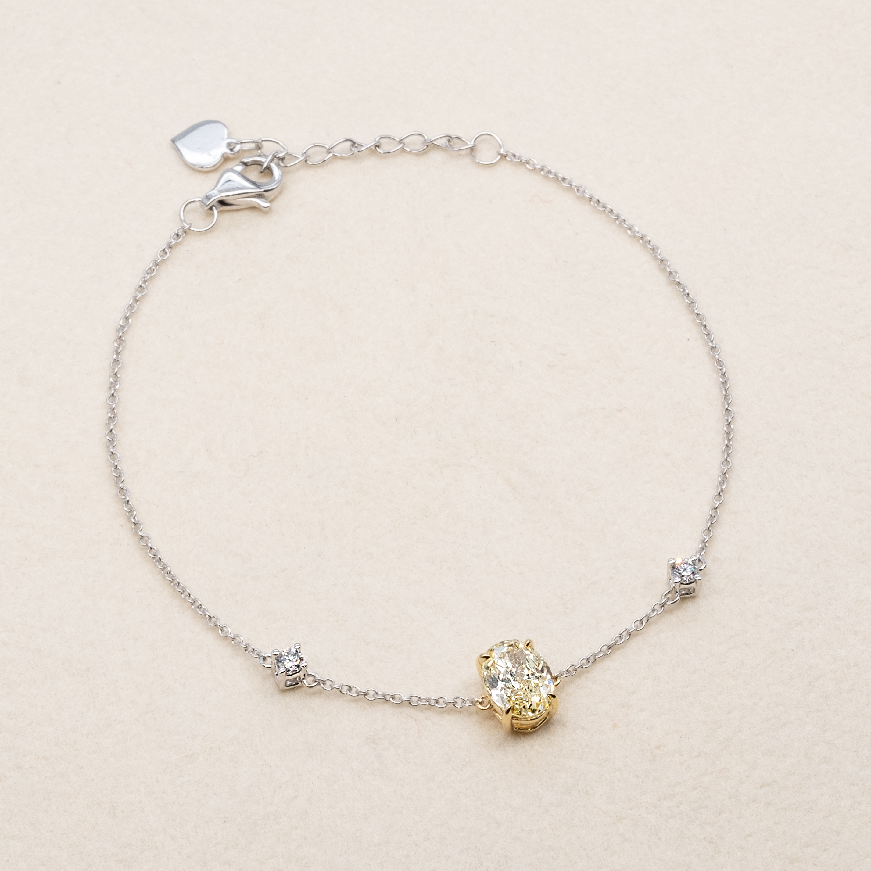 0.90ct VS1 橢圓形培育黃鑽18K白黃金手鏈 (附證書)