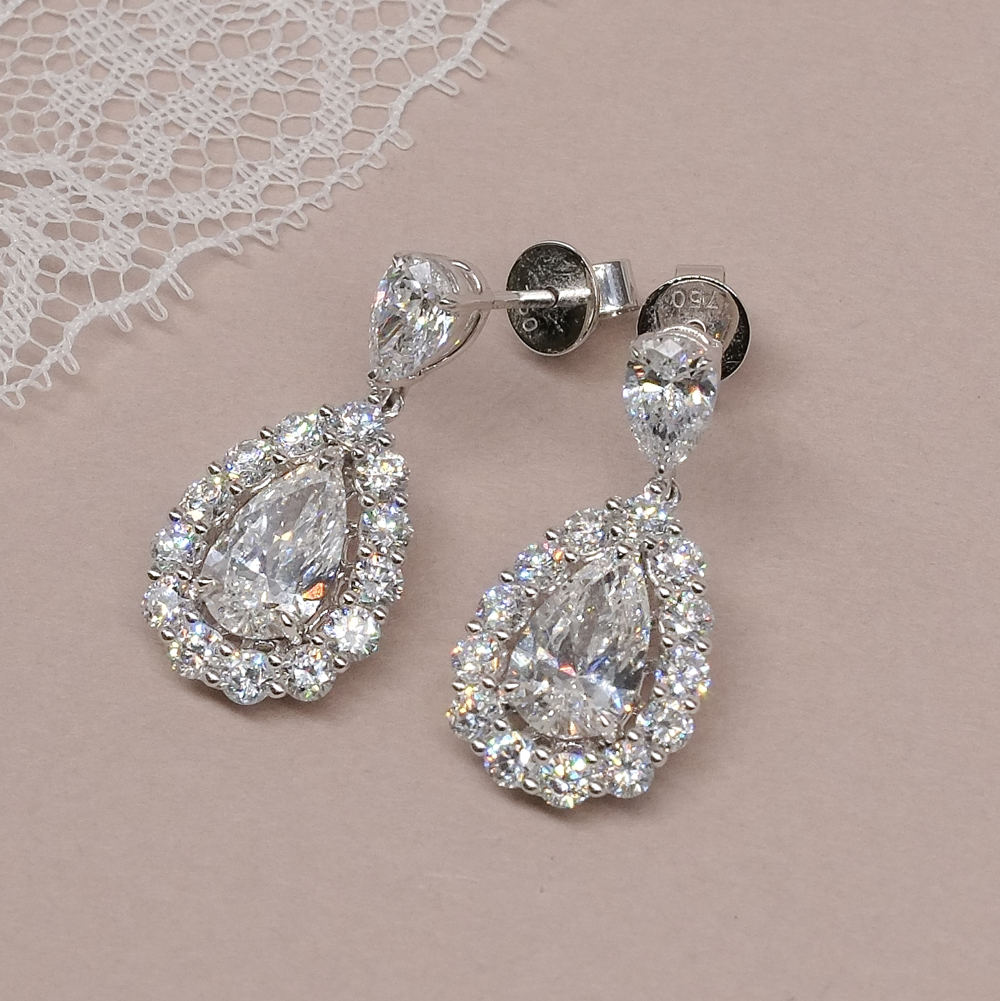 梨形培育鑽石光環垂墜耳環 (附證書)
