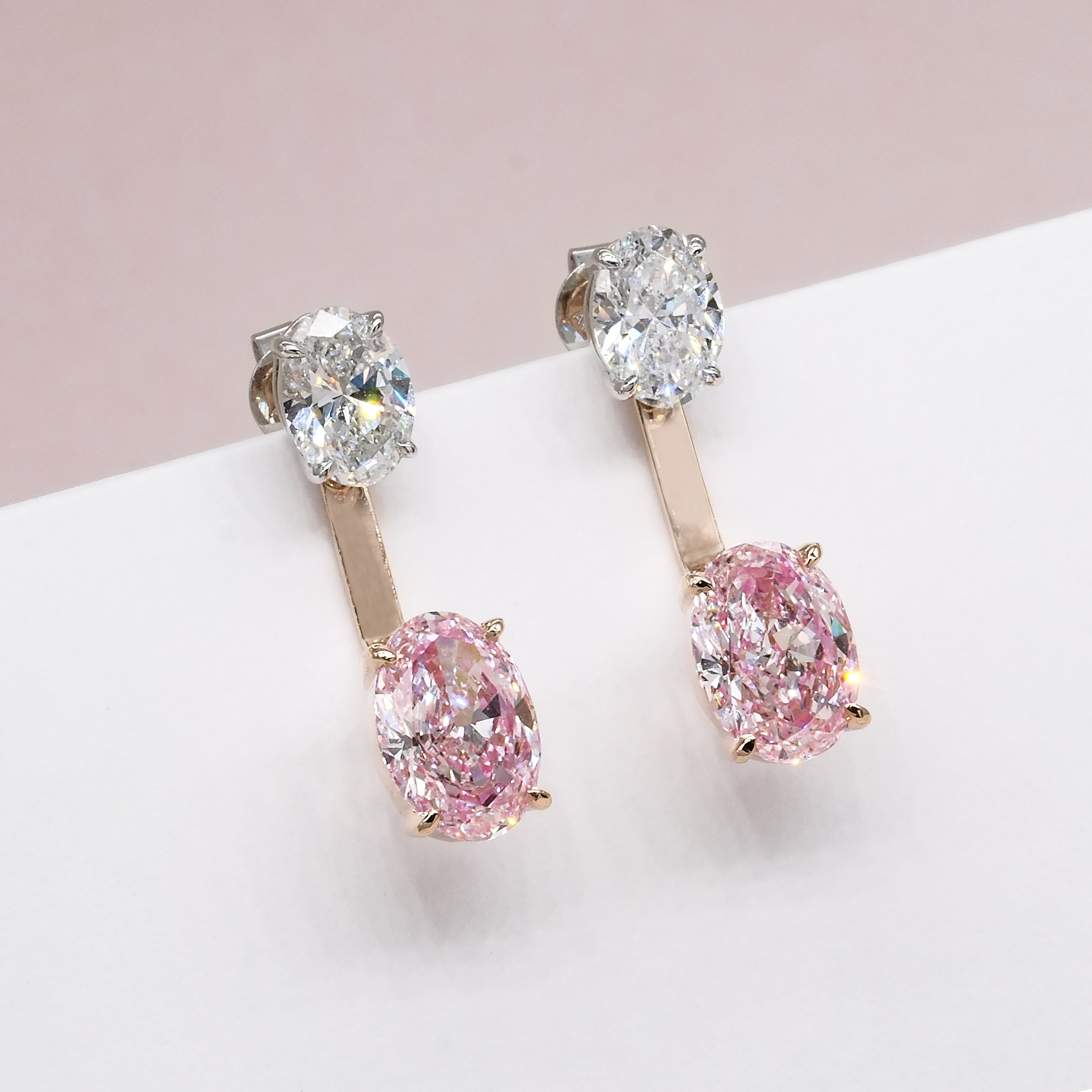 櫻映晨星橢圓形粉紅培育鑽石耳環 (附證書)