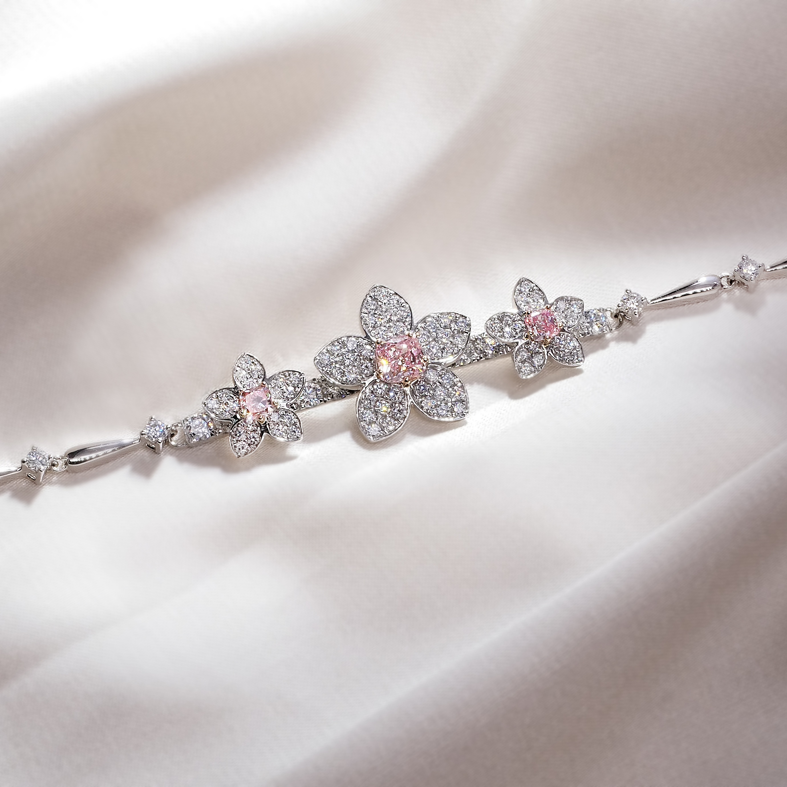 櫻花培育粉鑽18K白玫瑰金手鏈 (附證書)