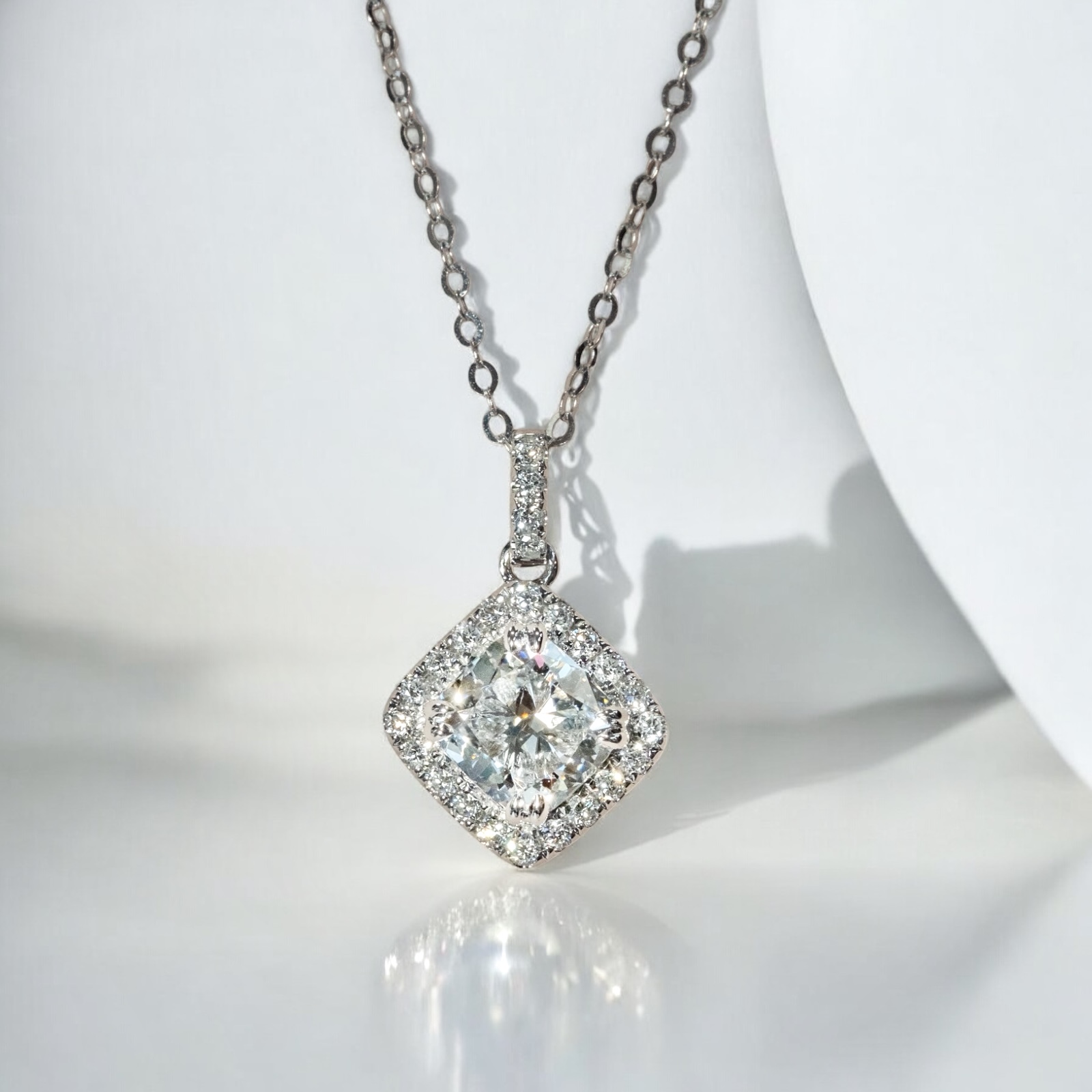 1卡枕形培育鑽石光環吊墜連18K頸鏈 (附證書)
