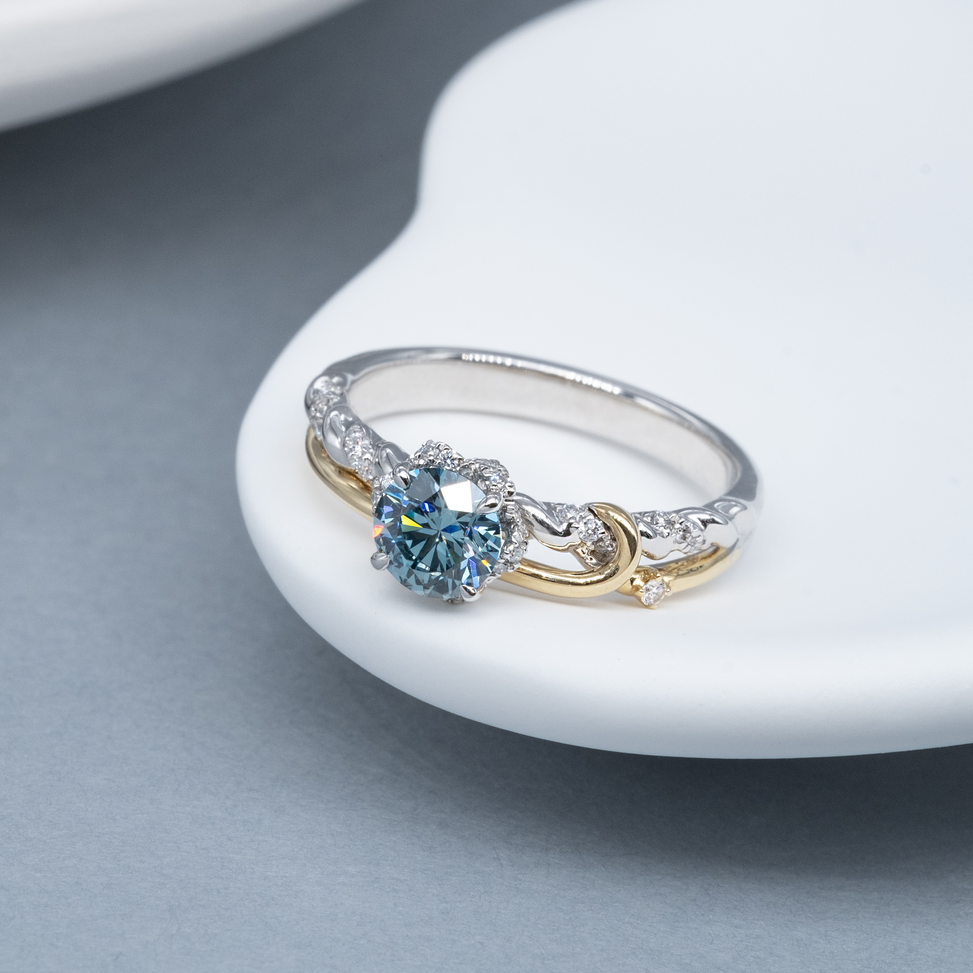 0.60ct 培育藍鑽18K白黃金戒指